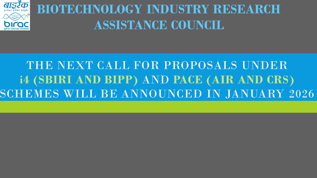 This is the official Website of Biotechnology Industry Research Assistance Council (BIRAC) , a Public Sector Enterprise, set up by Department of Biotechnology (DBT), Government of India © 2025