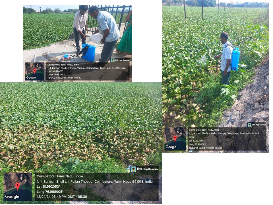 Title: Laboratory Phase - Developed and tested a novel weedicide formulation against Eichhornia crassipes water hyacinth under controlled conditions temperature, sunlight, dosage . - Confirmed efficacy- The weedicide effectively inhibited growth or killed the plant, establishing optimal application rates. Pilot and Field Preparation - Completed pilot study to validate initial lab findings. - Secured government approval Corporation Commissioner for field study in the designated area. - Sprayed weedicide across the approved study site to initiate real-world application. Field Monitoring and Water Quality Assessment - Conducted periodical water sample collection and monitoring before and after weedicide spraying. - Analyzed total water quality parameters, microbial populations, and zooplankton communities pre- and post-treatment. Toxicity and Safety Evaluations - Performed bioassay studies, including DNA damage analysis in fish to assess genotoxic effects. - Evaluated cytotoxicity of the weedicide formulation in L929 murine fibroblast cell lines using the MTT assay. - Validated the formulation through comparative analysis against commercial herbicides 2,4-D and glyphosate , confirming superior or equivalent performance. This dual lab-to-field approach ensures the weedicide controls invasive water hyacinth effectively while minimizing environmental risks, positioning it as a promising eco-friendly solution for lakes, ponds, and rivers. Analysis of total water quality, microbial and zooplankton populations was carried out before and after weedicide spraying. Bioassay studies, including DNA damage analysis in fish, were conducted to assess genotoxic effects. Cytotoxicity evaluation of the weedicide formulation was performed in L929 murine fibroblast cell lines using the MTT assay. The formulation was also validated through comparative analysis with commercial herbicides 2,4-D and glyphosate.