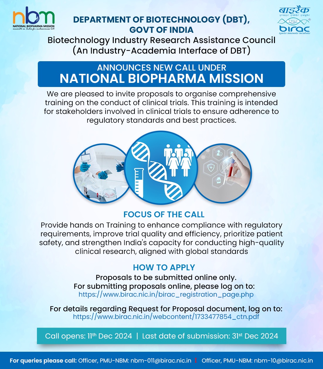 This is the official Website of Biotechnology Industry Research Assistance Council (BIRAC) , a Public Sector Enterprise, set up by Department of Biotechnology (DBT), Government of India © 2025