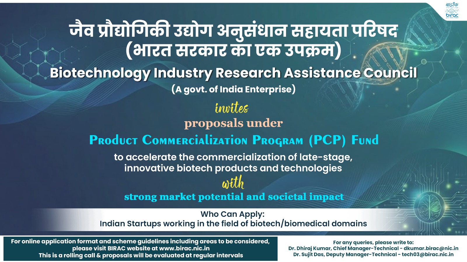 This is the official Website of Biotechnology Industry Research Assistance Council (BIRAC) , a Public Sector Enterprise, set up by Department of Biotechnology (DBT), Government of India © 2026